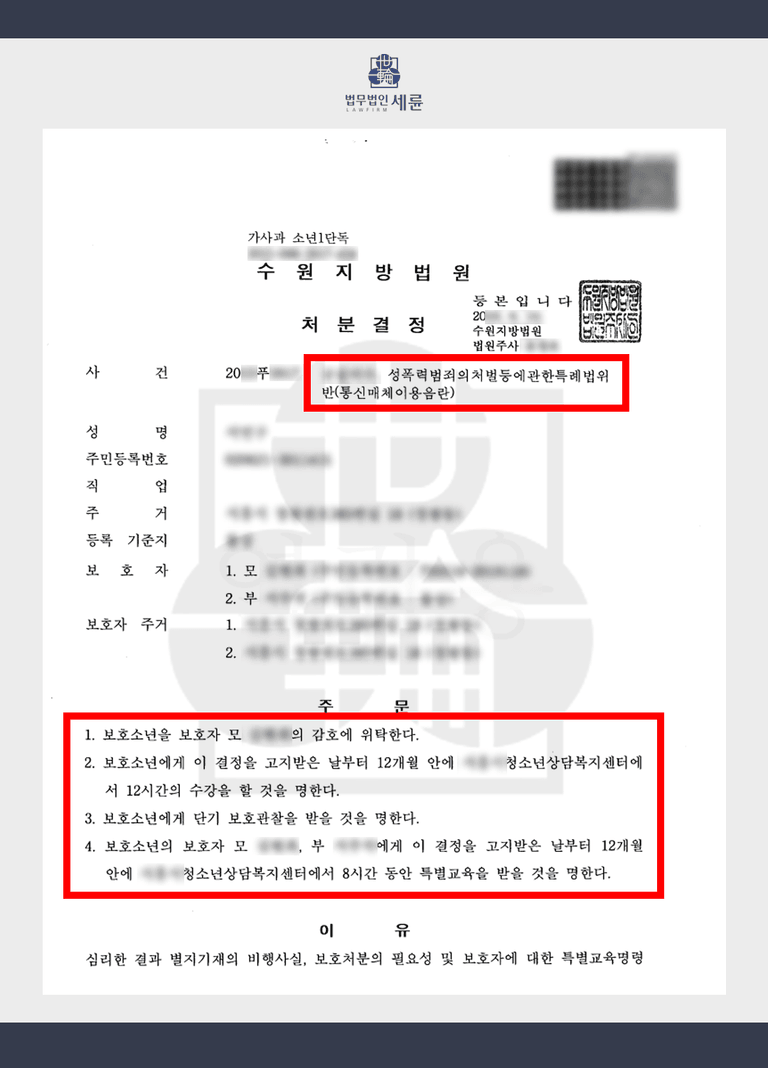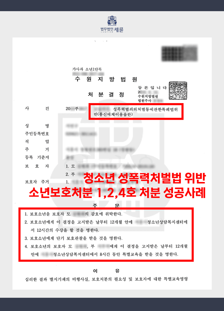 4️⃣ 청소년 성폭력처벌법위반 소년의 소년보호처분 감형 실제 사례