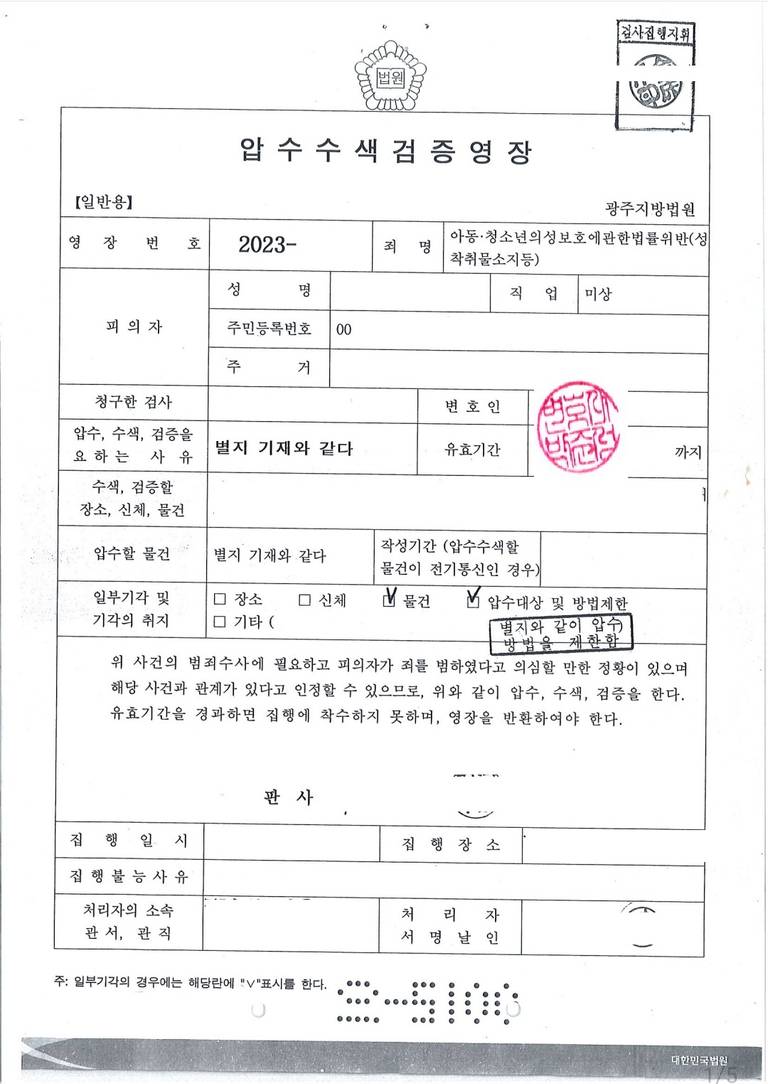 압수수색영장 예시