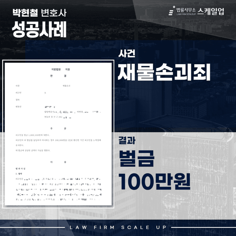 혐의 : 재물손괴죄 → 결과 : ‘벌금 100만원’으로 선처