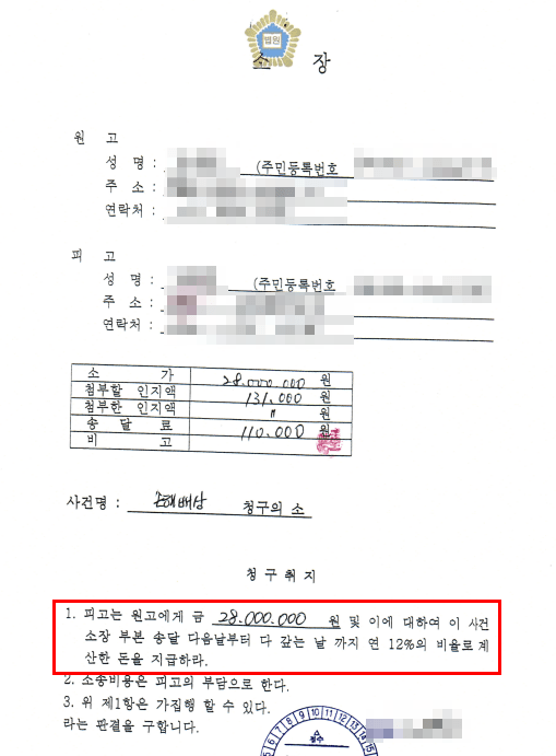 ![[성공사례] 2,800만원 손해배상청구 - 100만원 조정 성립](/_next/image?url=https%3A%2F%2Fd2ai3ajp99ywjy.cloudfront.net%2Fuploads%2Ftitleimage%2Foriginal%2F5c5cd63e12007f708911948d-original.jpg&w=3840&q=75)