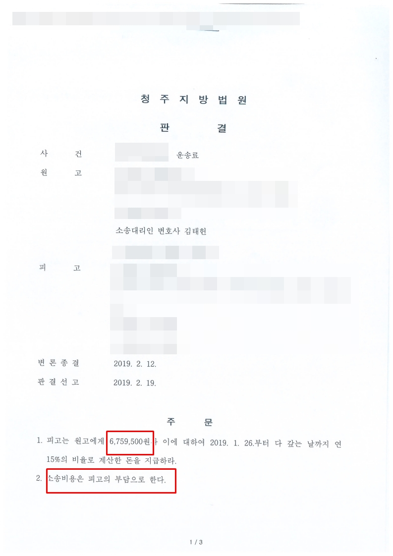 사실 복잡한 다툼은 없었고 예상대로 100% 승소하는 판결을 받을 수 있었습니다.