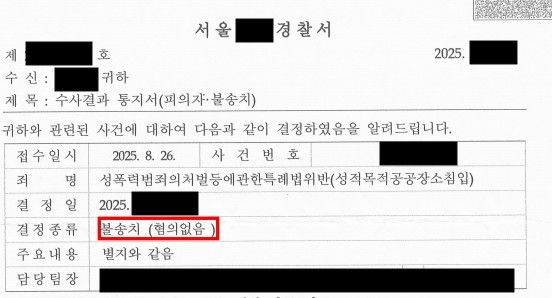 성적목적 다중이용장소 침입 불송치 성공사례