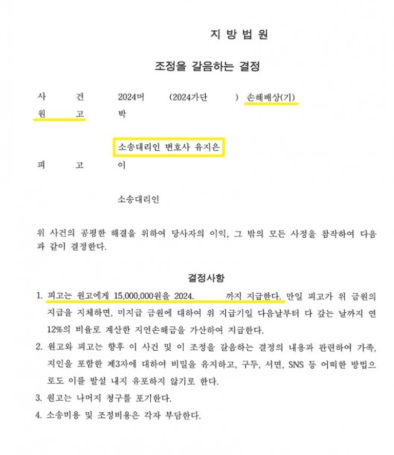 이후 상간남은 상대방이 유부녀라는 사실을 몰랐다는 사정이 있었지만, 확보된 객관적 자료를 바탕으로 협의가 진행돼 비밀유지 조건으로 1,500만 원의 위자료를 지급받는 방식으로 사건이 마무리됐습니다.