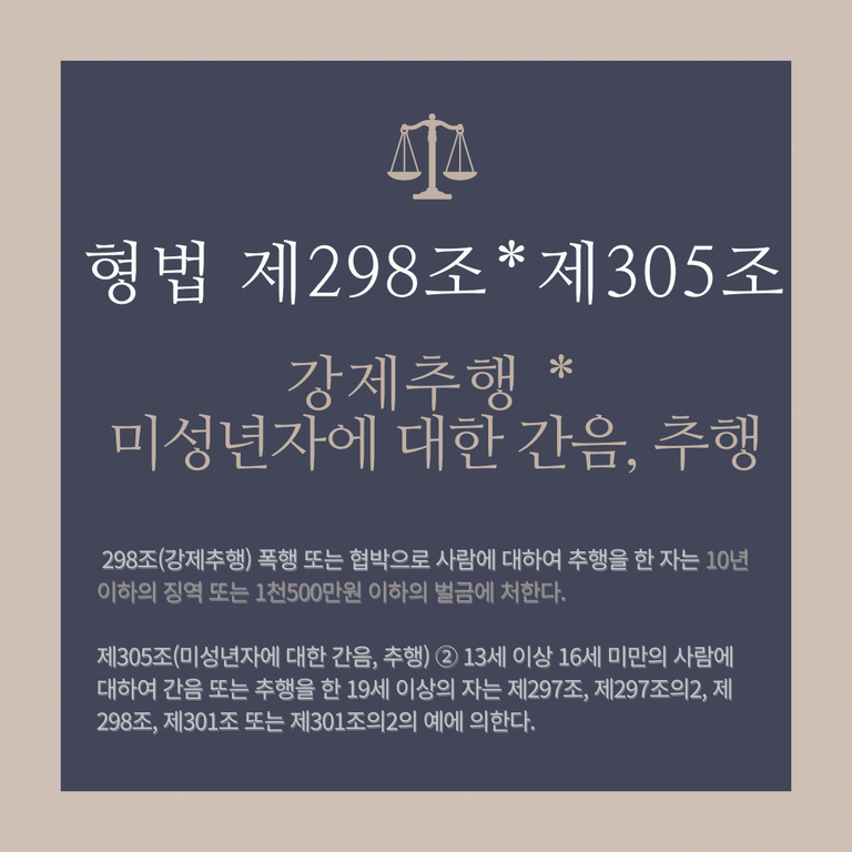 폭행 또는 협박으로 사람에 대하여 추행을 한 자는 10년 이하의 징역 또는 1천500만원 이하의 벌금에 처한다.