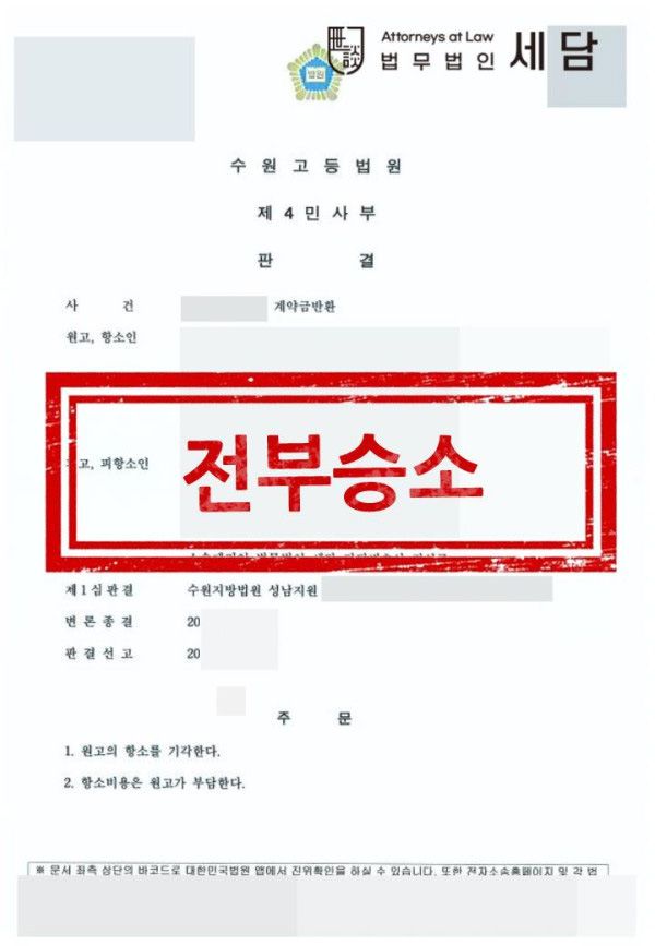 시행사 전부 승소 판결을 이끌어냈습니다.