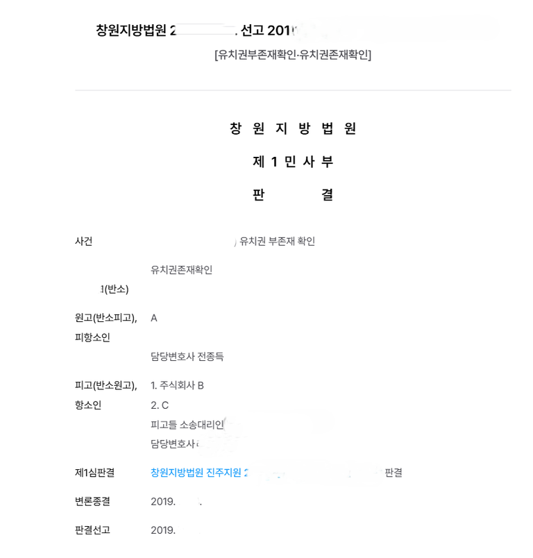 본 사건은 원고 A가 피고 주식회사 B와 C를 상대로 제기한 유치권 부존재확인 소송(본소)과 피고들이 제기한 유치권존재확인 반소에 관한 것입니다.