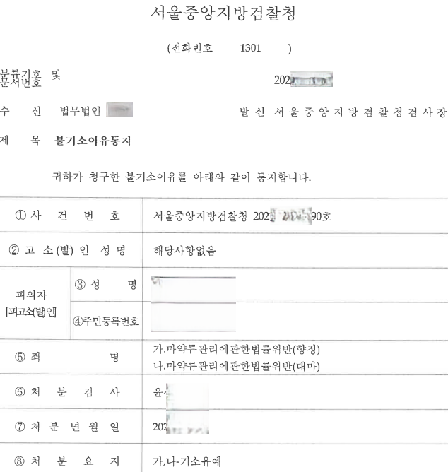 검찰은 가목 및 나목 향정 투약이라는