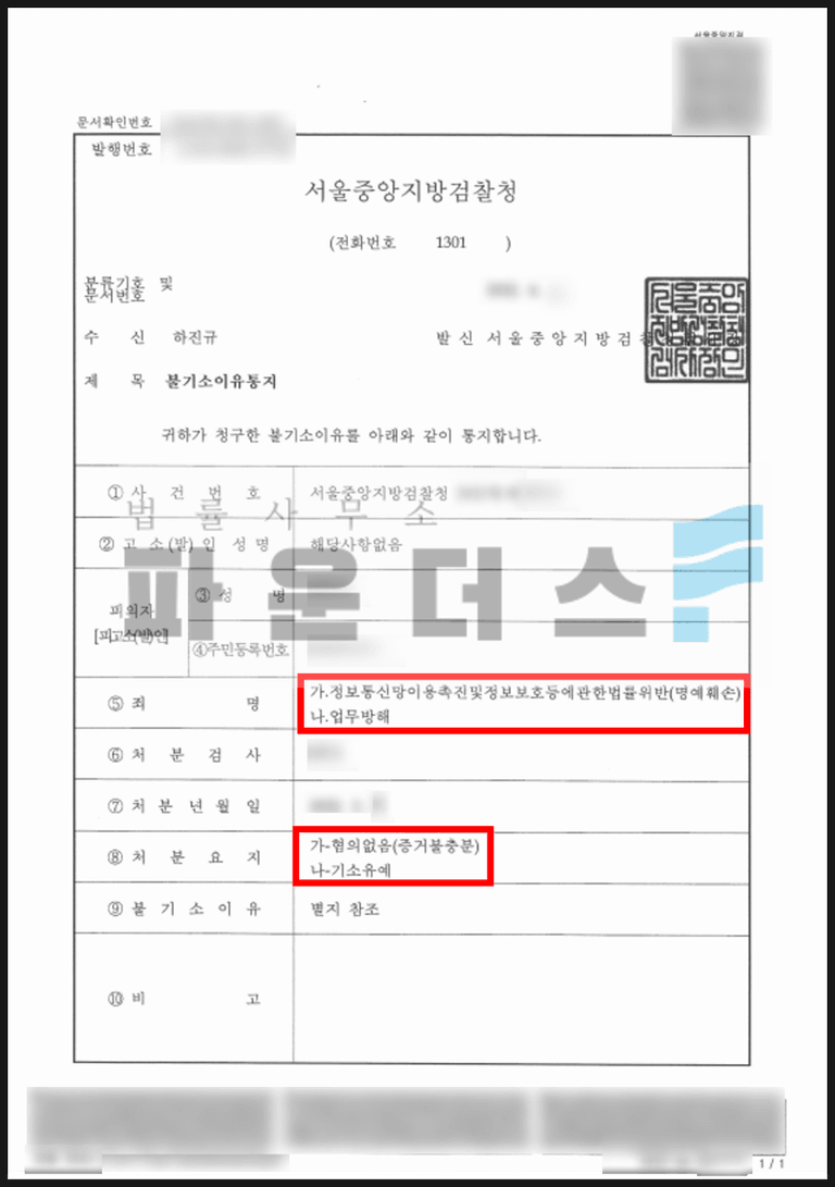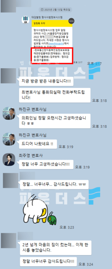 이러한 저희 변호인의 치열한 법률 조력 끝에 검찰 단계에서 '불기소 처분'을 받을 수 있었습니다.