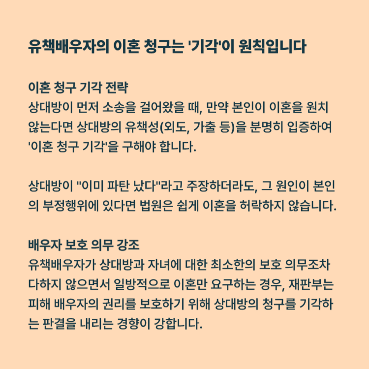 유책주의 원칙: 잘못한 자의 이혼 청구는 '기각'이 원칙입니다
