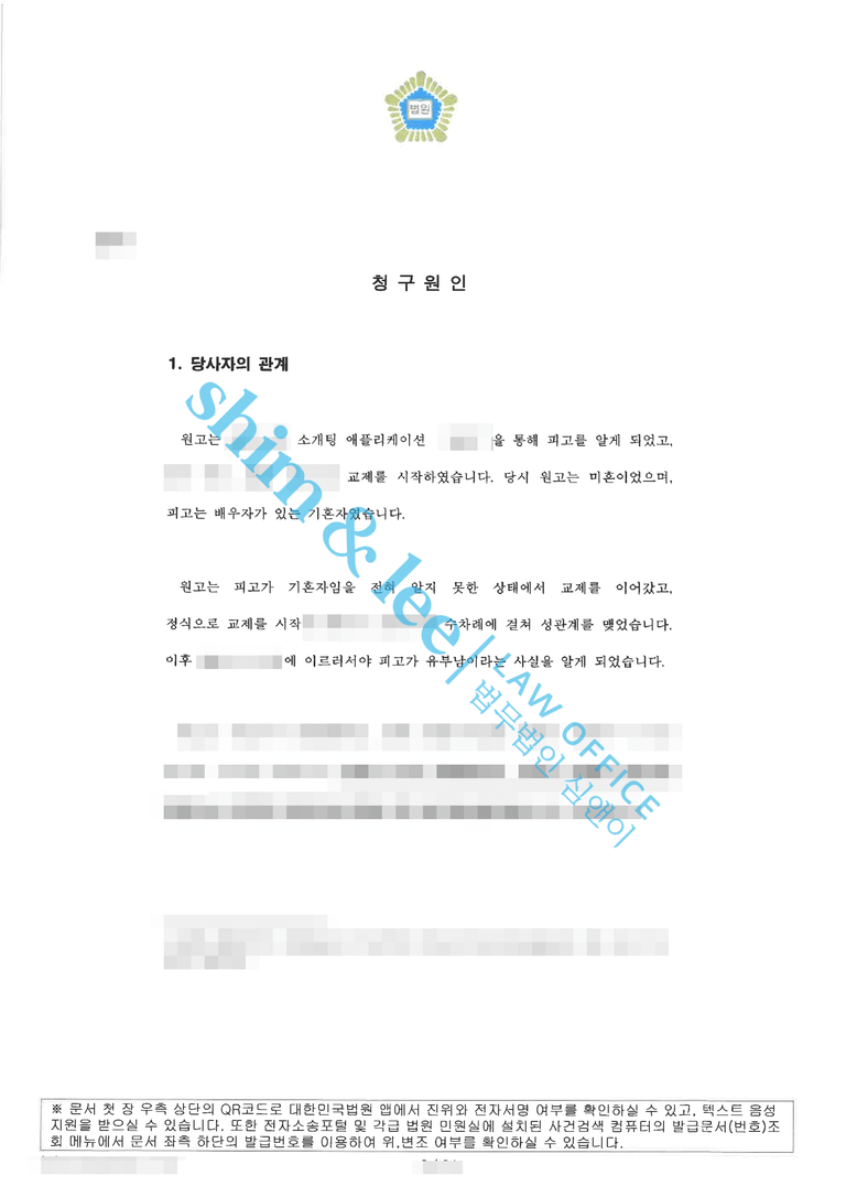 - 알고 보니 피고는 의뢰인에게 자신의 이름 뿐만 아니라 이미 혼인을 한 유부남이었습니다.