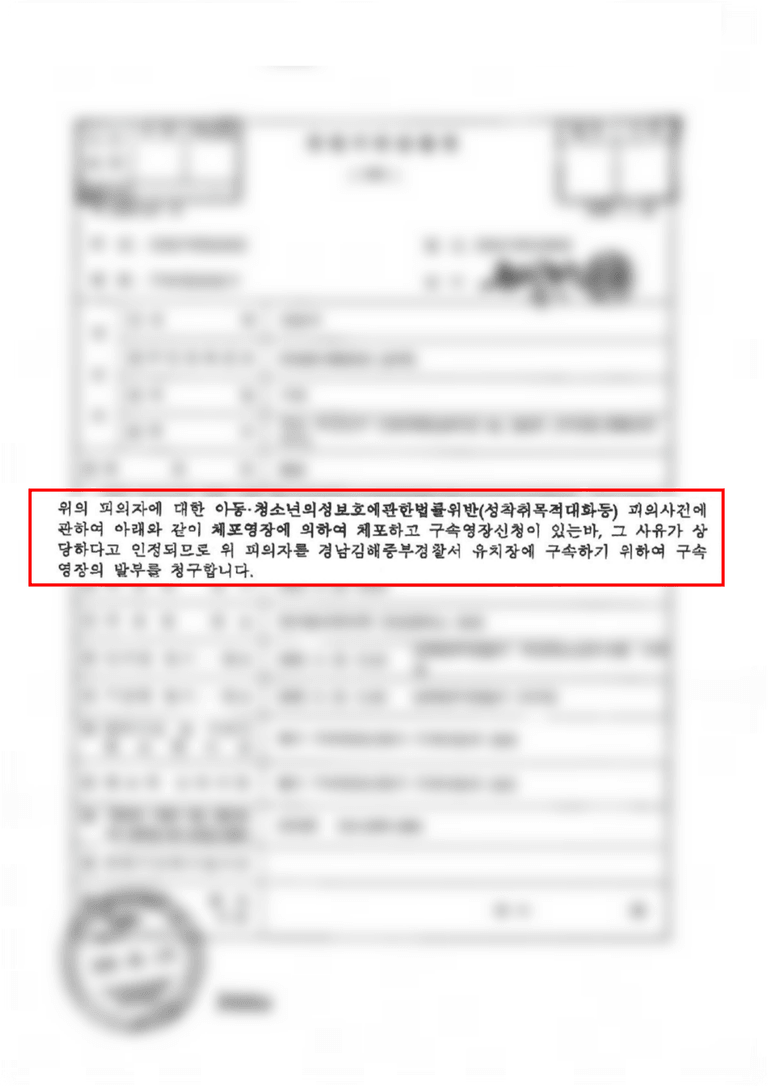 수사기관은 피의자가 미성년자를 상대로 성착취 목적의 대화와 성적인 행위 요구를 한 정황, 피해자의 전화번호·학교를 알고 있는 점, 과거 미성년자 접촉 전력 등을 근거로 도주 우려·재범 우려·피해자 위해 우려를 함께 주장하며 구속영장을 청구했습니다.