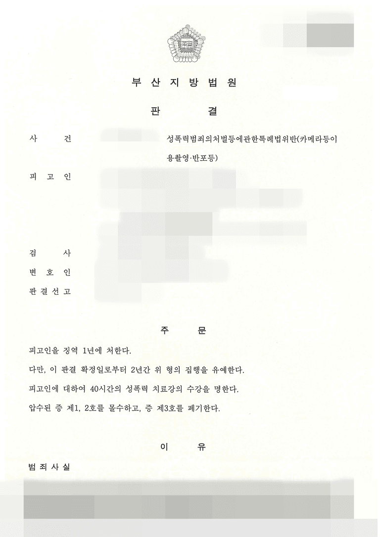 ✅ 유포 및 2차 가해 없음 (핵심): 불법 촬영물 범죄에서 가장 우려하는 것은 '유포'입니다. 저희는 디지털 포렌식 등을 통해 해당 영상이 외부로 유출되거나 제3자에게 공유된 적이 없음을 기술적으로 입증했습니다. 이것이 실형을 면하게 한 가장 큰 방어막이 되었습니다.