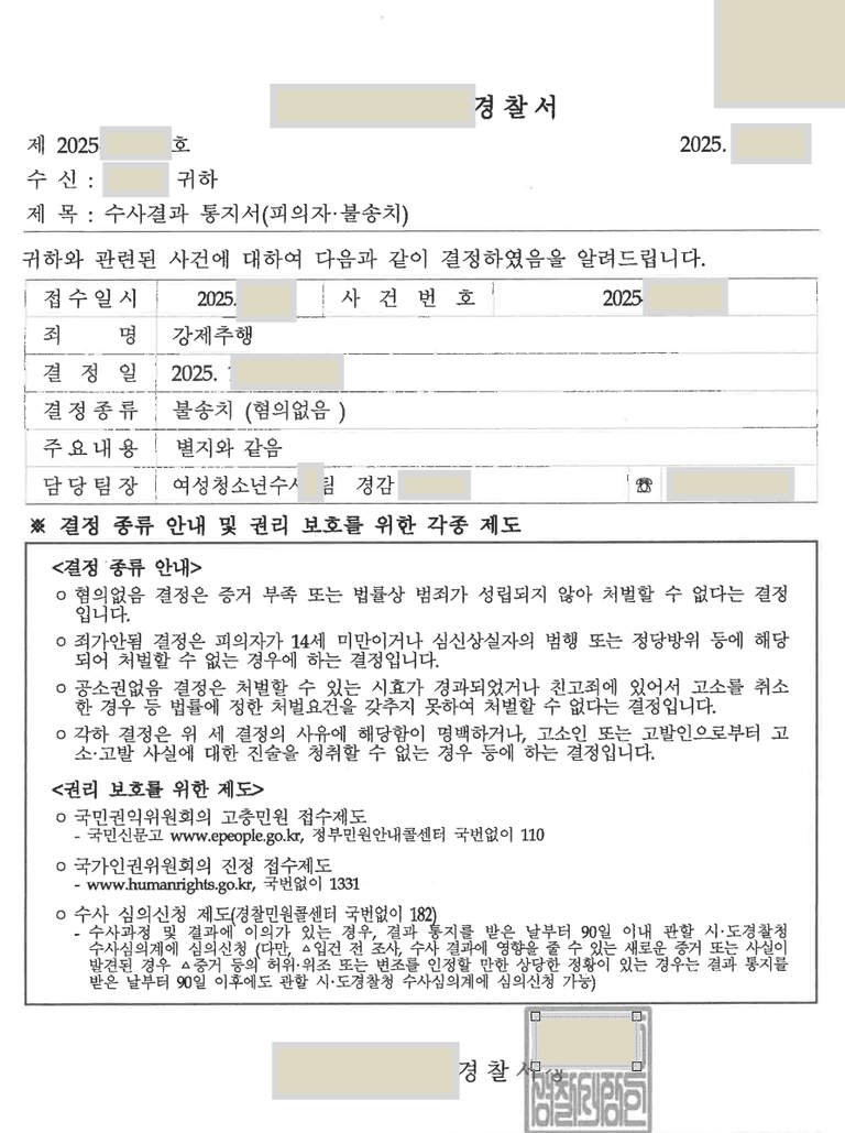 의뢰인분의 걱정이 무색하게 이 사건은 깔끔하게 불송치 처분을 받았습니다.