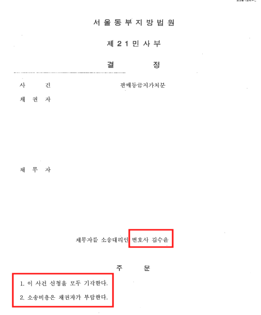 이와 같은 판단 하에 재판부는 신청인 A의 신청을 전부 기각하였습니다.