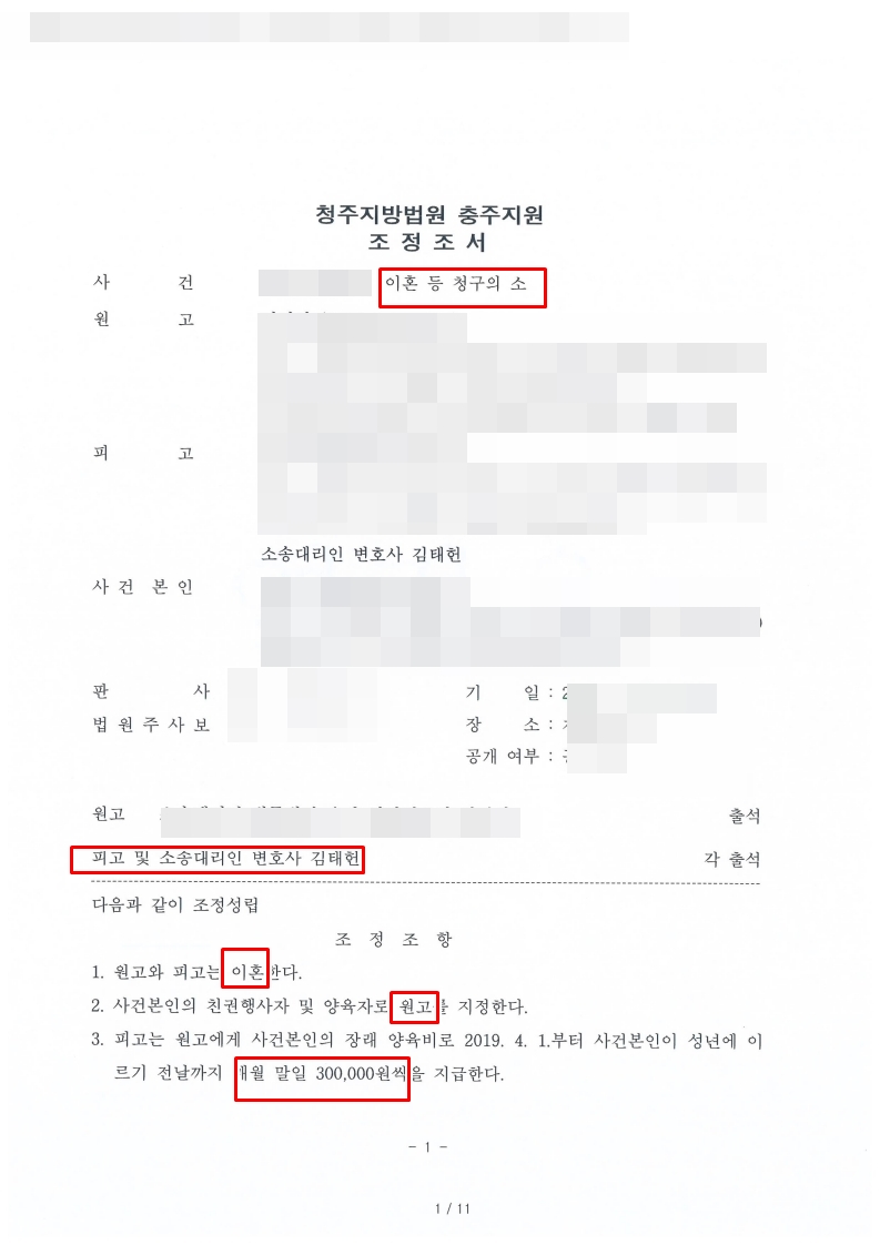 수원/용인/성남/화성 김태헌 변호사는 피고를 대리하여 양육비로 월 30만원씩 지급하는 판결을 받았습니다.