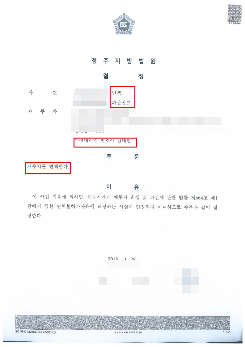 오늘은 파산면책결정에 관하여 승소사례를 소개해드립니다.