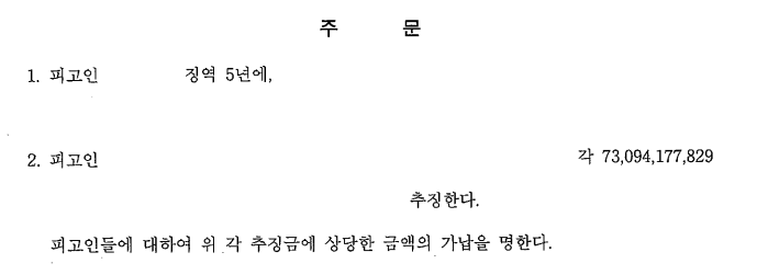 또한 다른 증거 등을 통하여 무죄를 받기가 어려웠기에 전체적인 범죄의 규모를 줄이고 추징을 없애는 방향으로 작업을 하였습니다.