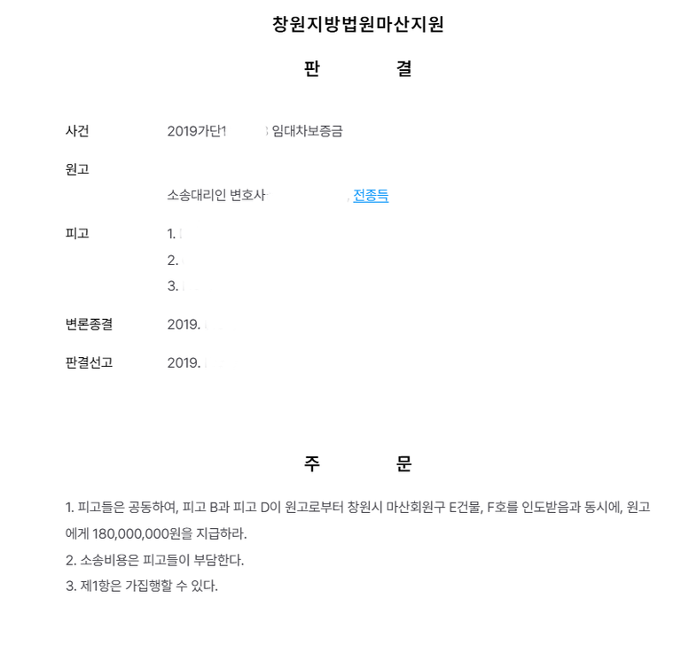 본 사건은 원고 A가 피고들(B, C, D)을 상대로 임대차보증금 1억 8천만원의 반환을 청구한 사안입니다.