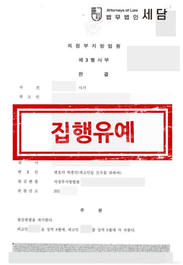 의뢰인에게는 형의 집행을 유예하는 집행유예 판결이 선고되었습니다.