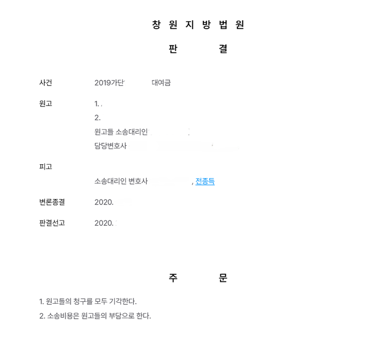 판결 결과: 원고들의 청구를 모두 기각하고, 소송비용은 원고들의 부담으로 합니다.