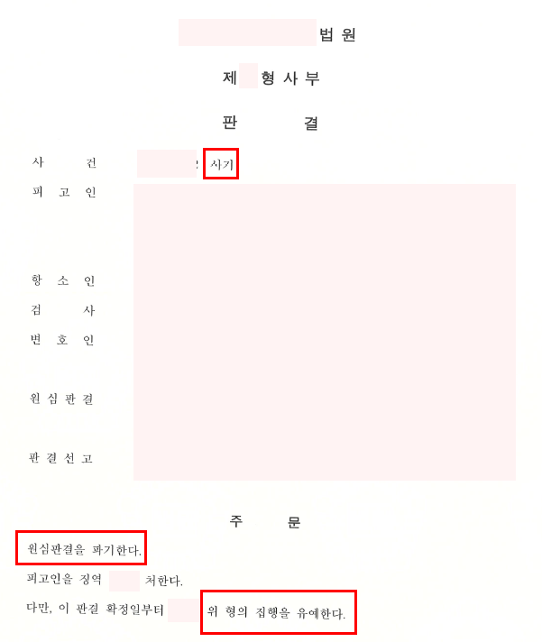 결론 - 법원 - 원심파기 집행유예