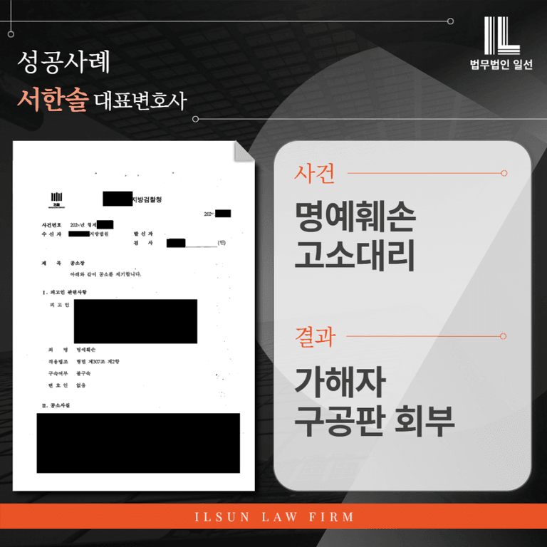 명예훼손 고소대리 → 결과 : 가해자 ‘구공판’ 회부