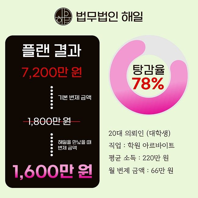 변제기간단축 대학생개인회생 : 총 78% 탕감