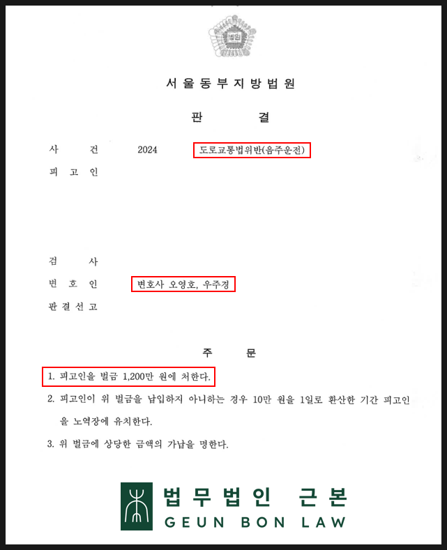 그 결과, 음주운전 재범이라는 불리한 전력에도 불구하고 징역형이나 집행유예가 아닌 벌금 1,200만 원이 선고되었습니다. 이는 구속 가능성과 직장 상실이라는 최악의 상황을 모두 피하고, 의뢰인이 사회 구성원으로서 다시 정상적인 삶을 이어갈 수 있는 기회를 지켜낸 판결이었습니다.