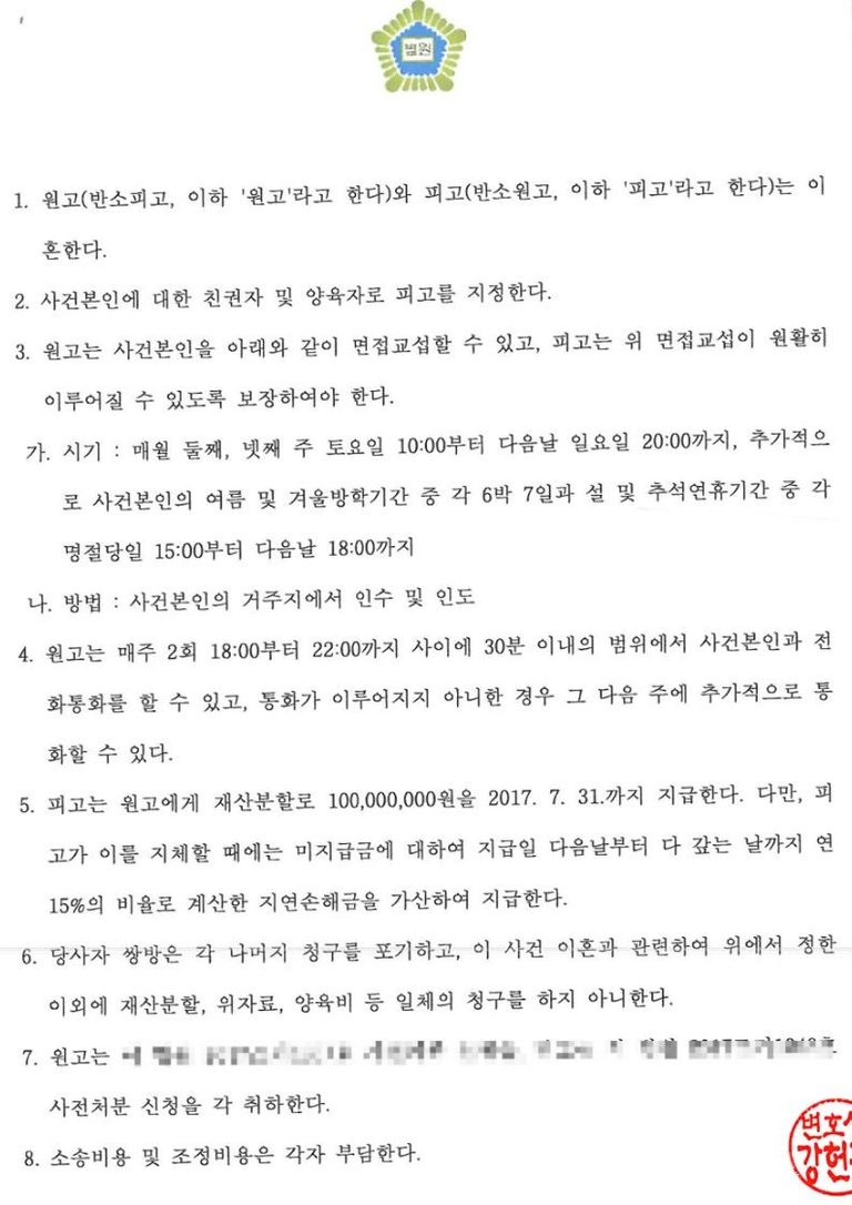 재산분할 1억원 지급 결정