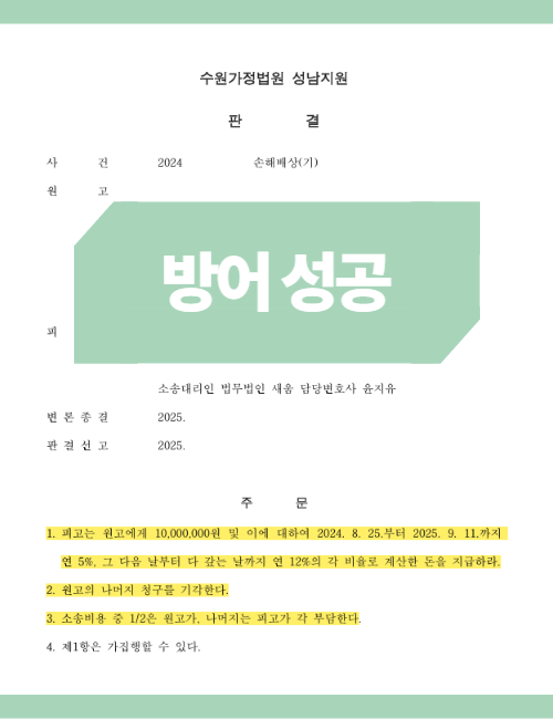 [성공사례] 3,000만 원 청구를 '실질 부담 500만 원'대로 방어한 비결