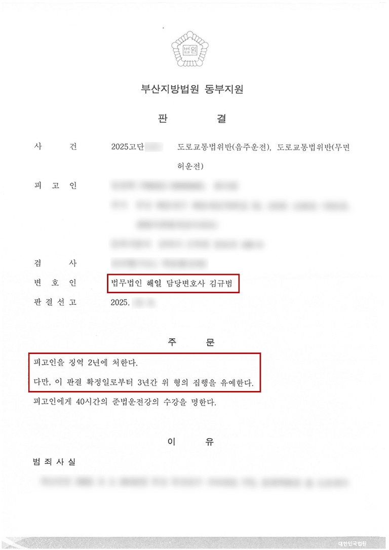 부산무면허음주운전 사고를 일으킨 의뢰인