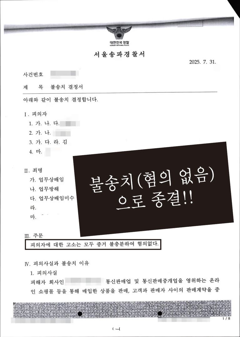 "결과: 서울송파경찰서, '전부 불송치' 결정"
