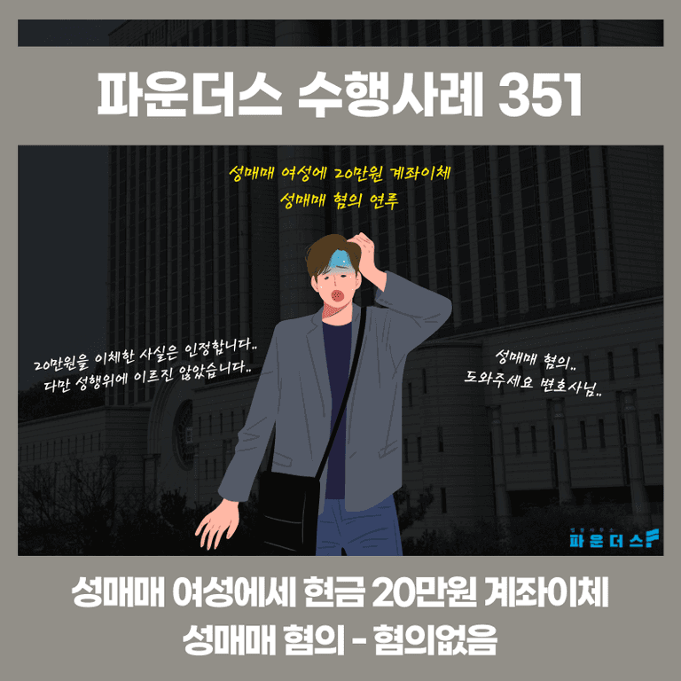 의뢰인은은 성매매 여성으로 지목된 A씨에게 현금 20만 원을 이체한 사실이 확인되어 성매매 혐의로 조사를 앞두게 되었습니다.