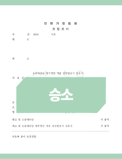 위자료 최대치 확보: 통상적인 외도 위자료는 1,500만 원~2,000만 원 선에서 결정되지만, 새움은 B씨의 가출과 악의적 소 제기 등을 강조하여 판결 시 인정될 수 있는 최대치인 3,000만 원을 조정안에 관철했습니다.
