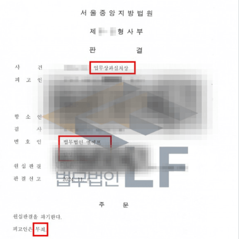 의뢰인은 법원으로부터 무죄를 선고받을 수 있었습니다.