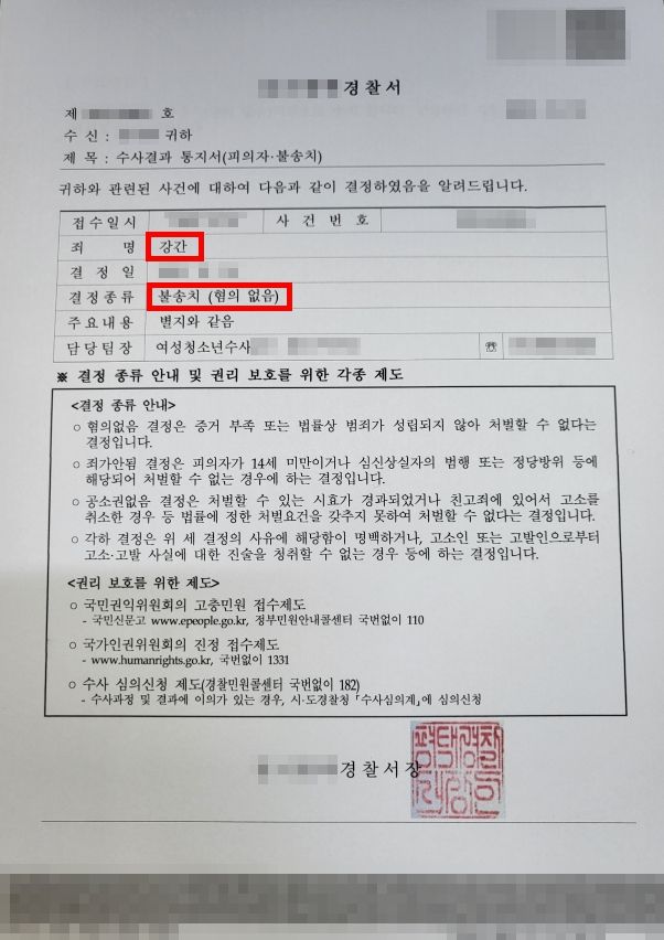 #4. 강간 혐의 불송치 결정