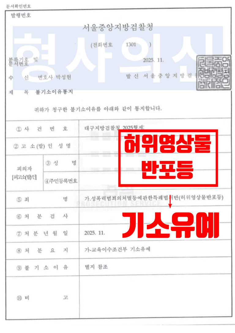 대구지방검찰청은 법률사무소 유(唯)의 형사전문변호사의 변호인의견서 기재 내용을 전부 받아들여 교육이수조건부 기소유예 처분을 하였습니다.