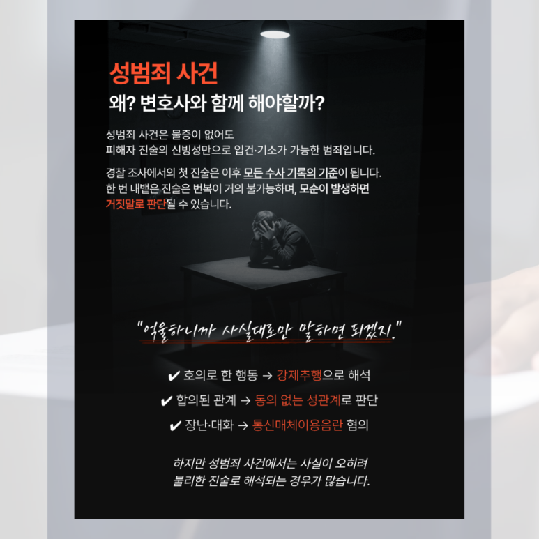 형사·성범죄 사건을 오래 다뤄온 변호사가 함께합니다