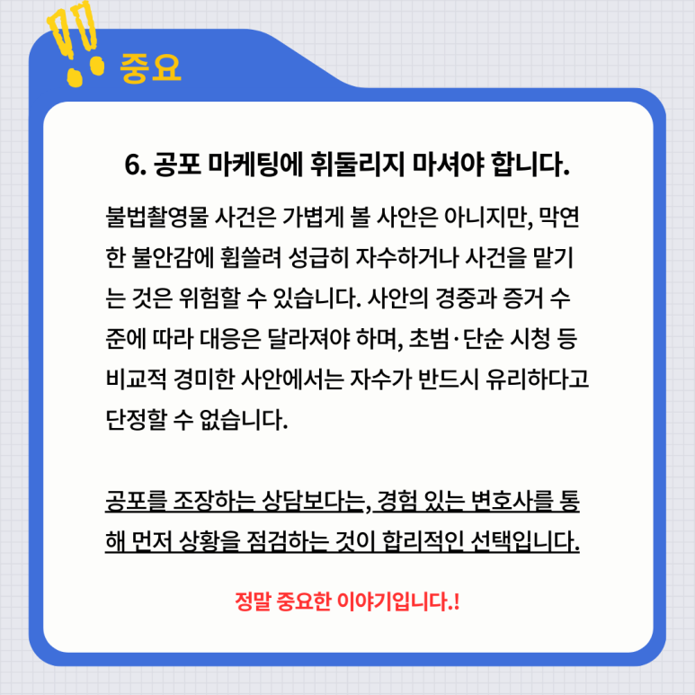 지금 상황에 꼭 맞는 상담을 통해 대응 전략을 수립하시길 바랍니다.