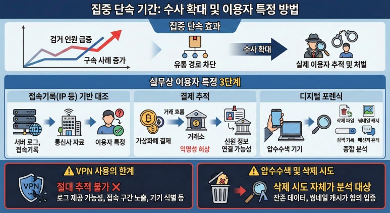 집중 단속 기간에는 검거 인원이 급증하고, 구속 사례 역시 함께 늘어나는 경향을 보입니다. 이는 수사기관의 접근이 유통 경로 차단에 그치지 않고, 실제 이용자에 대한 추적과 처벌로까지 확대되고 있음을 보여줍니다.