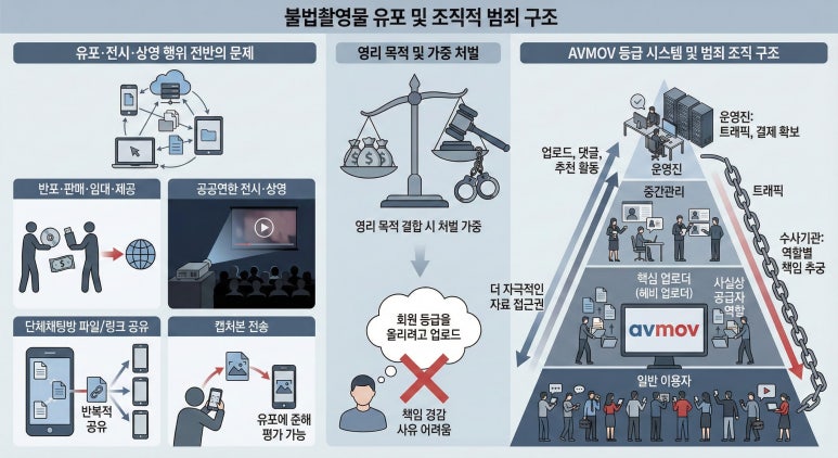 단체채팅방에 파일을 올리거나, 불법 촬영물이 있는 게시물의 링크를 반복적으로 공유하는 행위, 캡처본을 전송하는 행위도 사안에 따라 유포에 준해 평가될 수 있습니다.