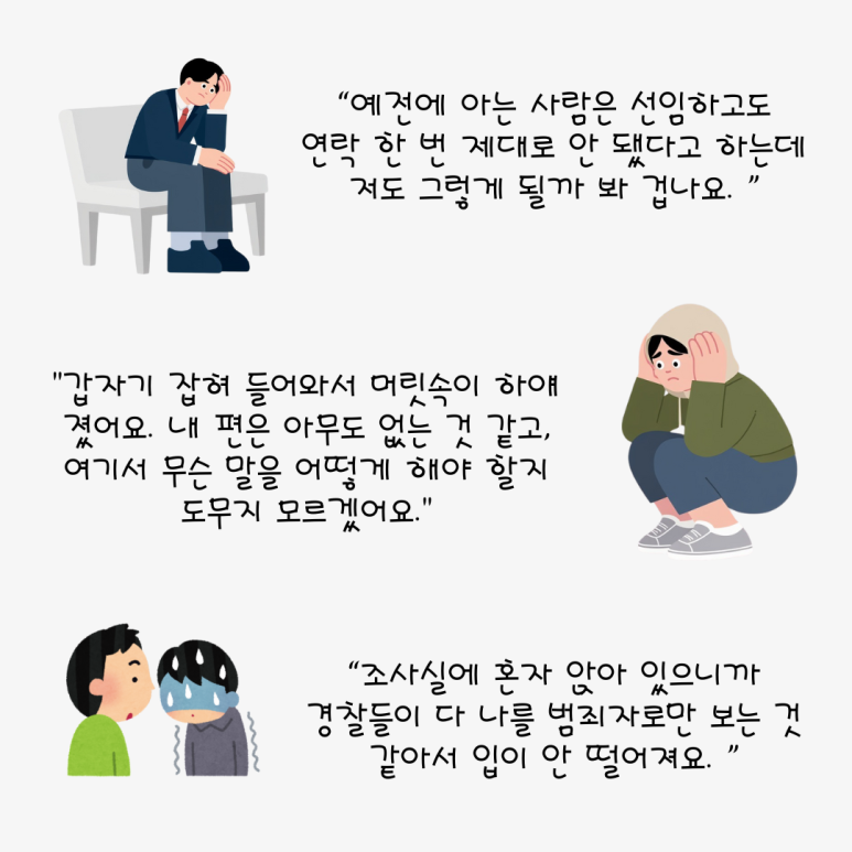 -상황이 주는 공포감과 압박 속에서 사실관계와 대응 방향을 충분히 정리하지 않은 상태로 진술을 시작하는 경우입니다.