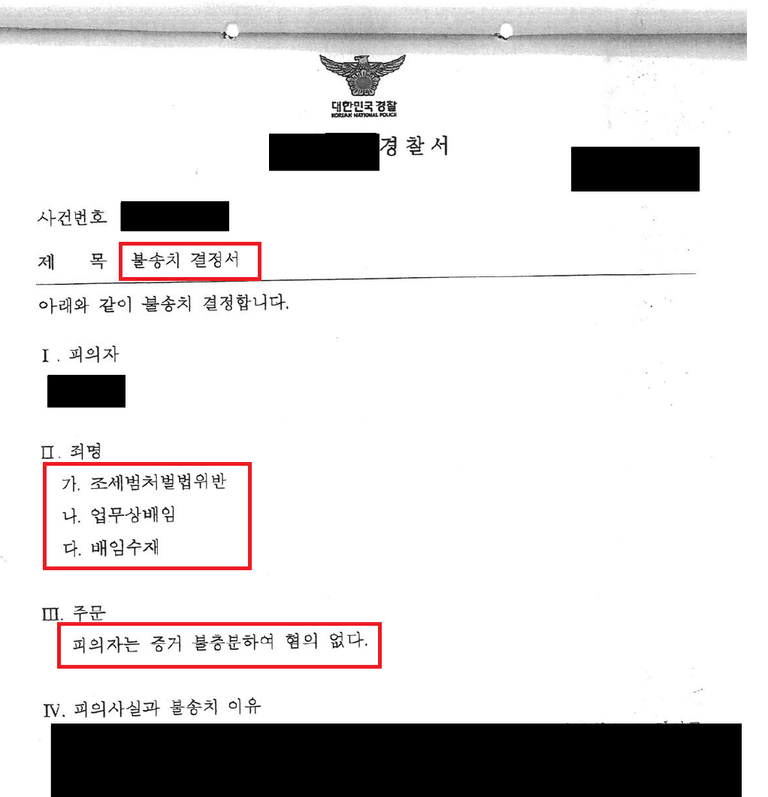 ✔ 결국, 의뢰인이 일부 절차를 제대로 준수하지 못한 부분은 있으나, 배임에 이를 정도의 행위는 아니라는 등의 이유로 불송치(혐의없음) 라는 결과를 이끌어 낼 수 있었습니다.