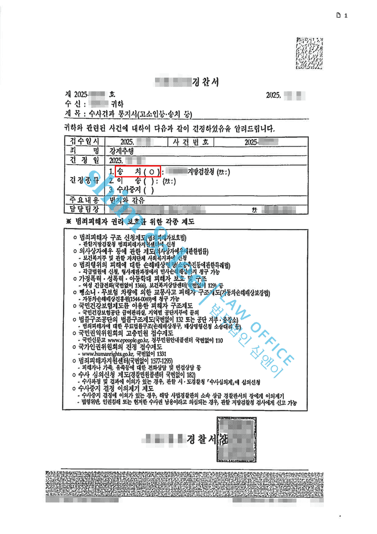 - 담당 수사관은 고소장에 드러난 명확한 사실관계와 구체적인 의뢰인의 진술을 바탕으로 가해자의 강제추행 혐의가 충분히 인정된다고 판단하여 검찰로 송치 결정을 내렸습니다.