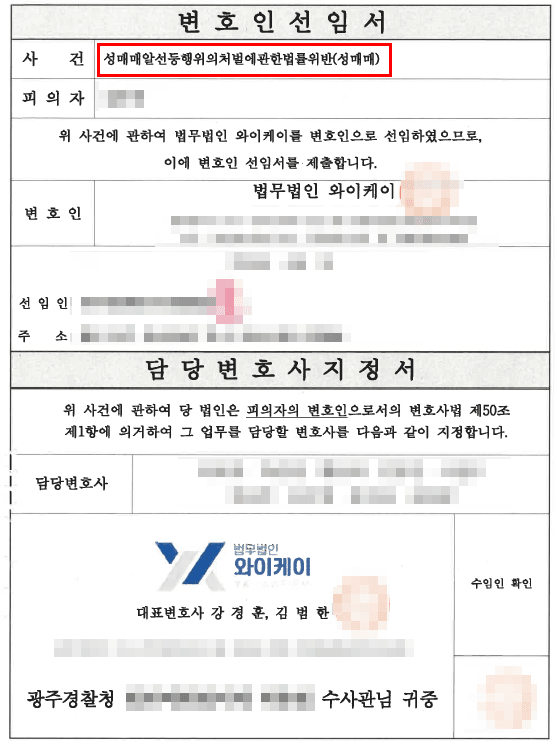 성매매 적발 → 경찰 단계 선임 → 조사 동석 → 의견서 및 양형자료 제출 → 검찰, 기소유예 처분