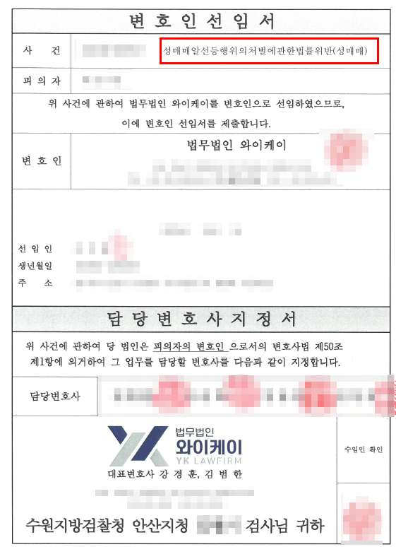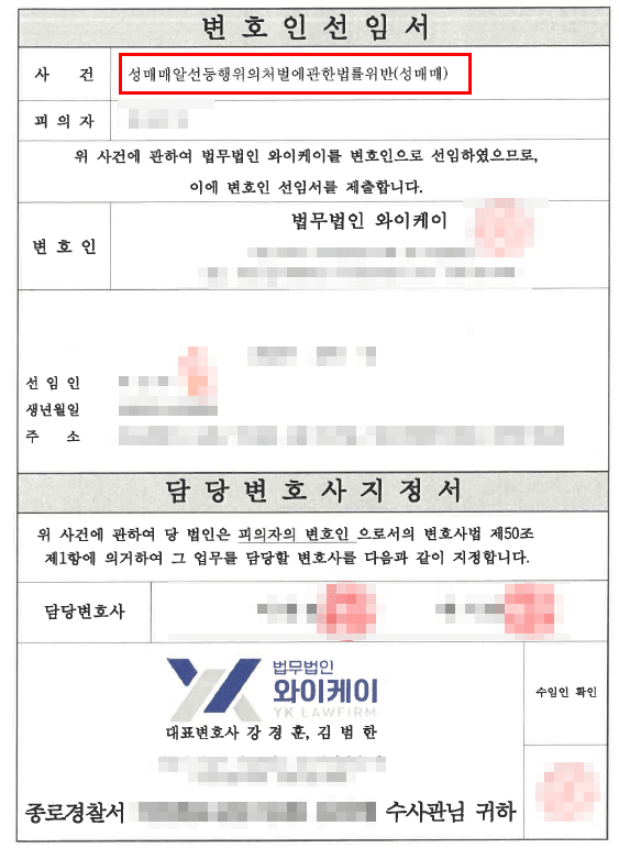 성매매 적발 → 검찰 단계 선임 → 조사 동석 → 의견서 및 양형자료 제출 → 검찰, 기소유예 처분