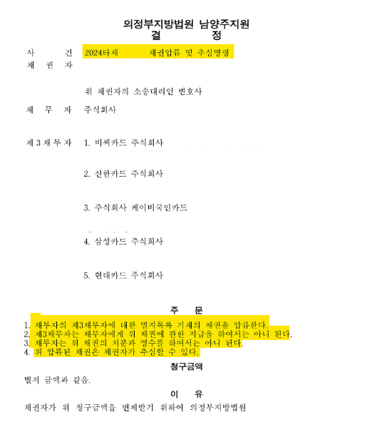 오늘은 카드대금을 압류하여 채권을 모두 회수한 사례를 소개해드리겠습니다.