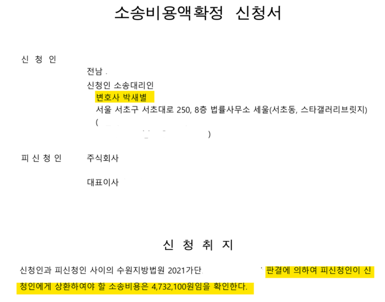의뢰인이 소송비용확정신청을 통해 채무자에게 받아야 할 금액은 약 470만 원 상당이었음