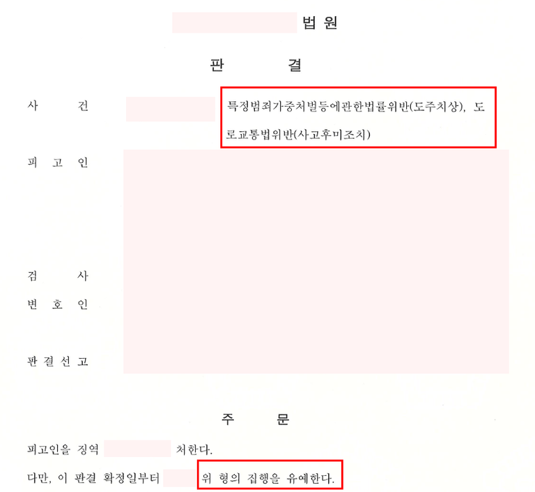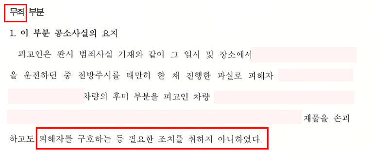 결론 - 집행유예 (사고후미조치 무죄)