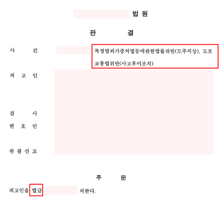 결론 - 법원 - 벌금형 (특가도주 무죄)